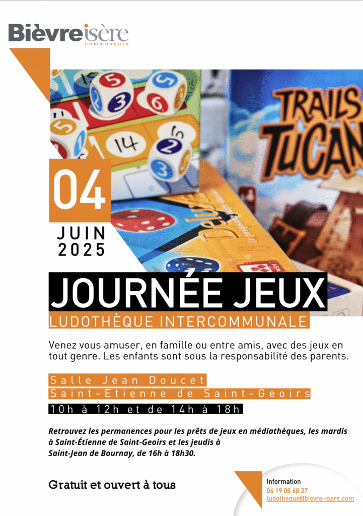 JOURNÉE JEUX – LUDOTHÈQUE INTERCOMMUNALE Salle Jean Doucet – Saint-Étienne de Saint-Geoirs De 10h à 12h…