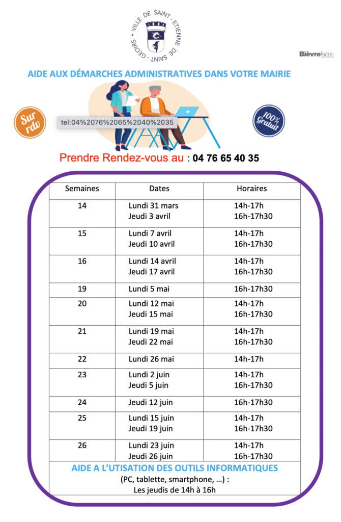 Retrouvez le nouvel agenda des permanences d’aide aux démarches administratives proposées en Mairie.