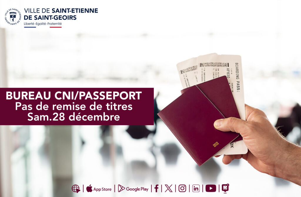 Madame, Monsieur, Le bureau de délivrance de titres CNI/Passeport sera exceptionnellement fermé samedi 28 décembre prochain.…