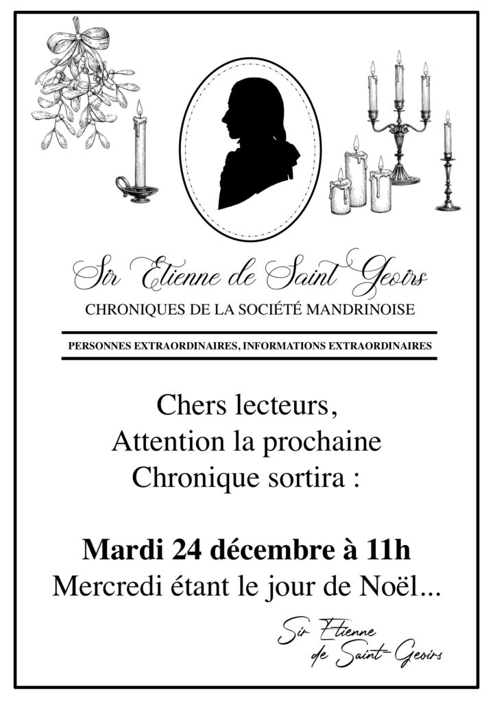 Très chers lecteurs, Noël tombant un mercredi, la prochaine chronique sera disponible avec un peu d’avance,…