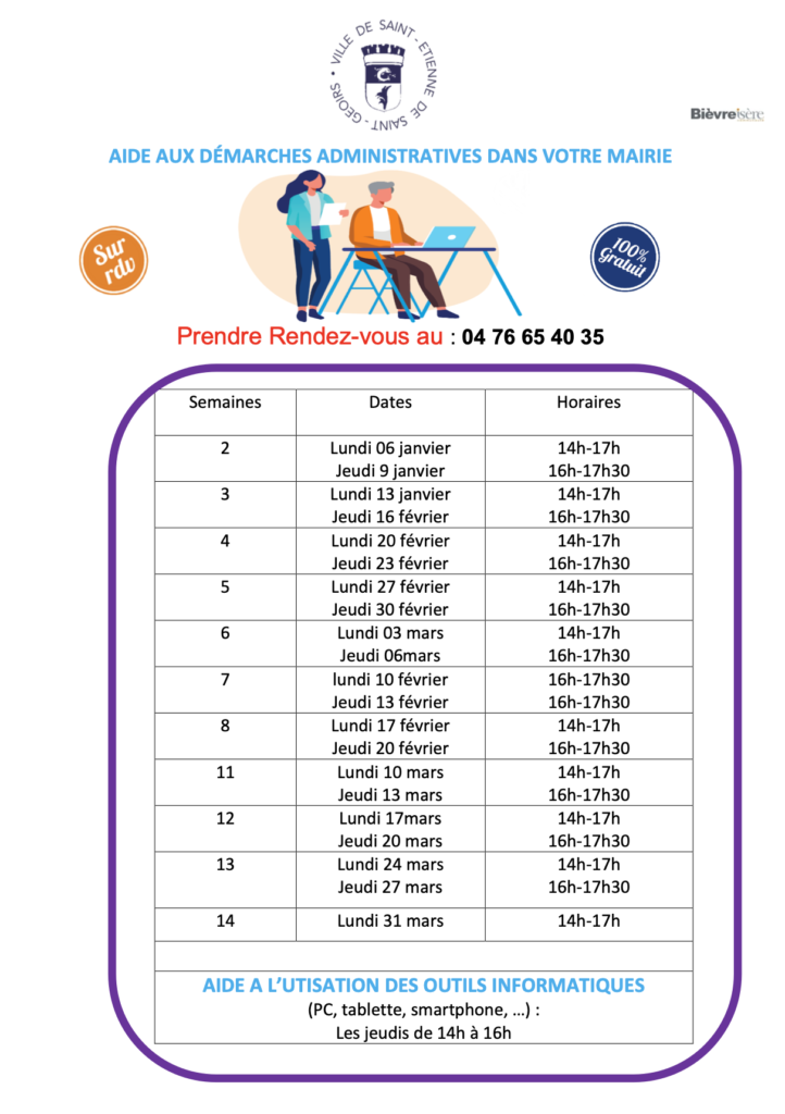 Le nouveau calendrier relatif à l’aide aux démarches administratives est disponible. Retrouver les dates et horaires…