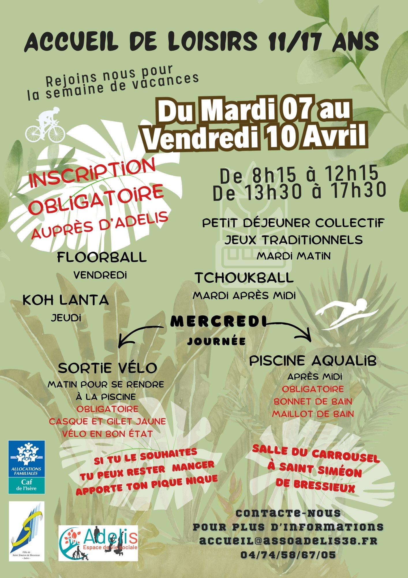 À l’occasion des prochaines vacances, un premier programme est proposé du 7 au 10 avril : activités sportives, créatives et moments de partage seront au rendez-vous.