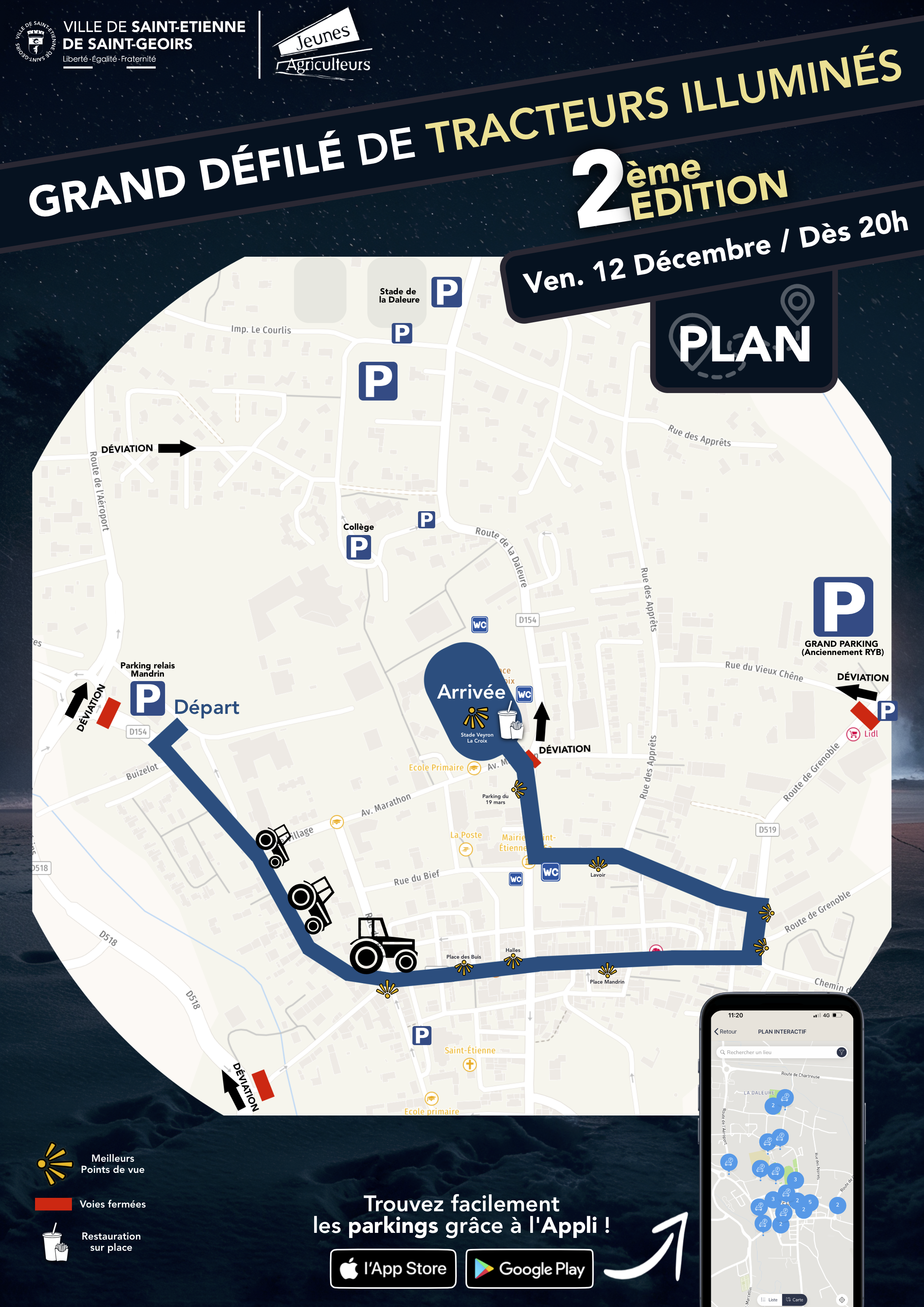 -> Pensez à télécharger l’Appli : « Ville de Saint-Etienne de Saint-Geoirs » sur Apple Store et Play Store afin d’accéder facilement à tous les parkings, sanitaires, etc !
