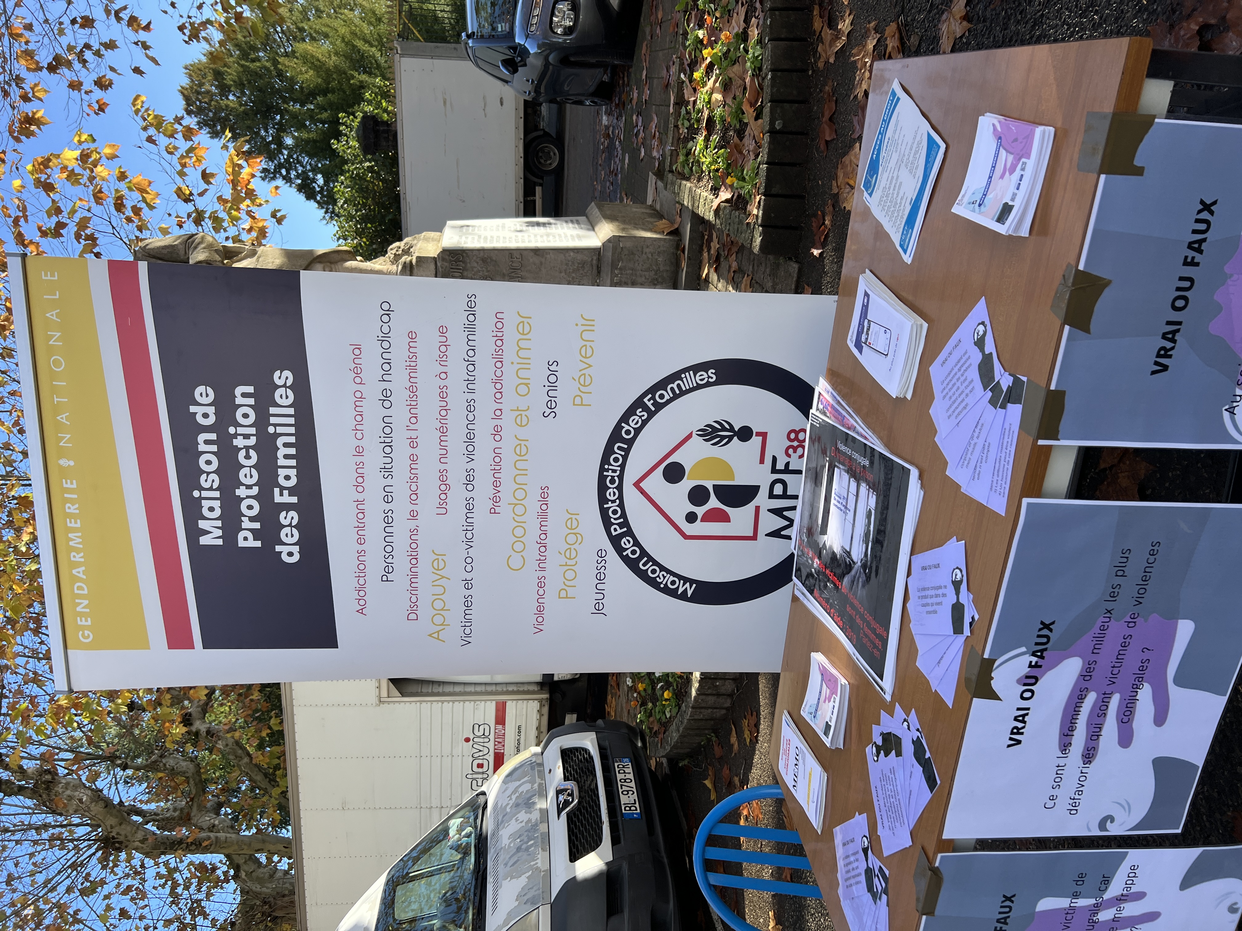 Ce matin au marché hebdomadaire a débuté la campagne de sensibilisation dans le cadre d’Automne solidaire, en partenariat avec France Victimes, la Gendarmerie nationale (Maison de protection des familles de L’Isle-d’Abeau et brigade locale).