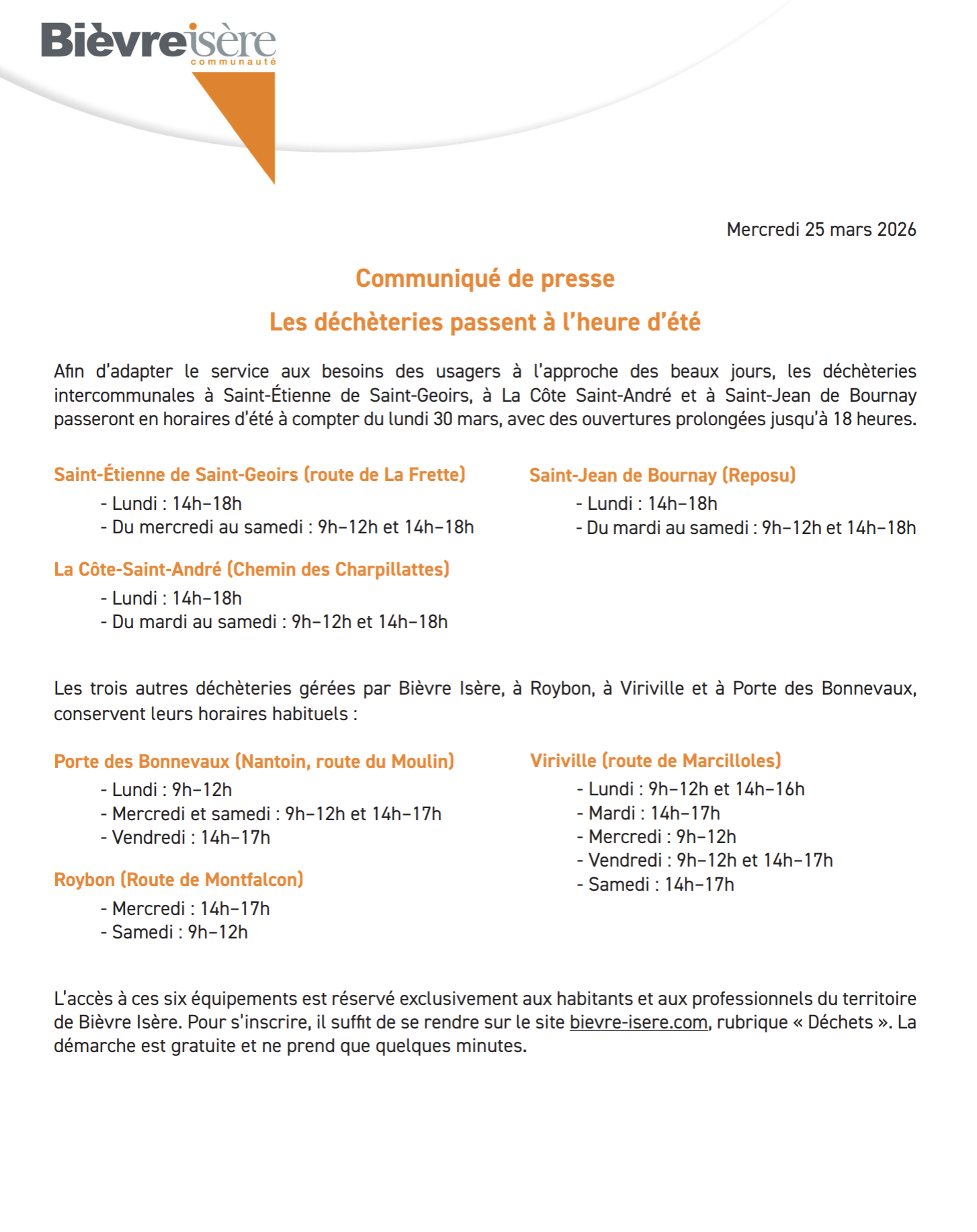 Horaires d’été à la déchèterie